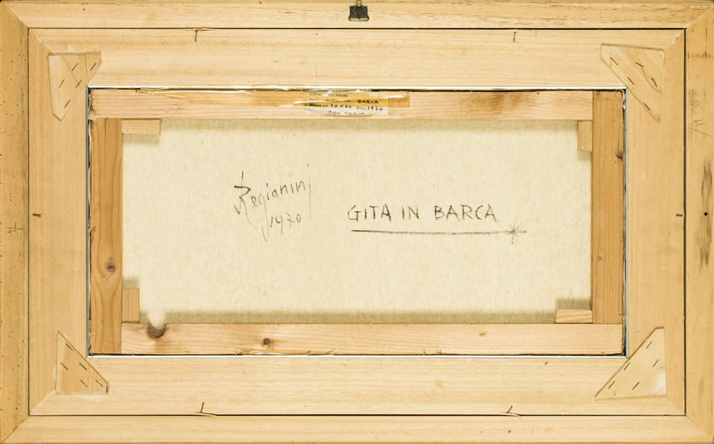 LUIGI REGIANINI (1930-2013)Gita in barca, 1970Olio su telacm 30x60Firma e...