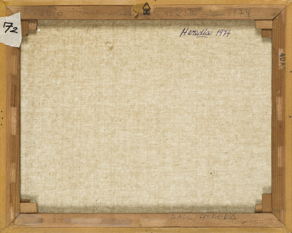 RAUL HEREDIA (1944)Cronica urbana, 1974Olio su telacm 40x50Firma, titolo e...
