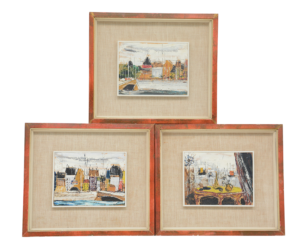 Gatti Tre dipinti ad olio su cartoncino di diverso soggetto (cm 15x19) uno firmato, in cornice