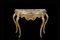 Consolle di forma mossa in legno intagliato e dorato a motivi floreali,...