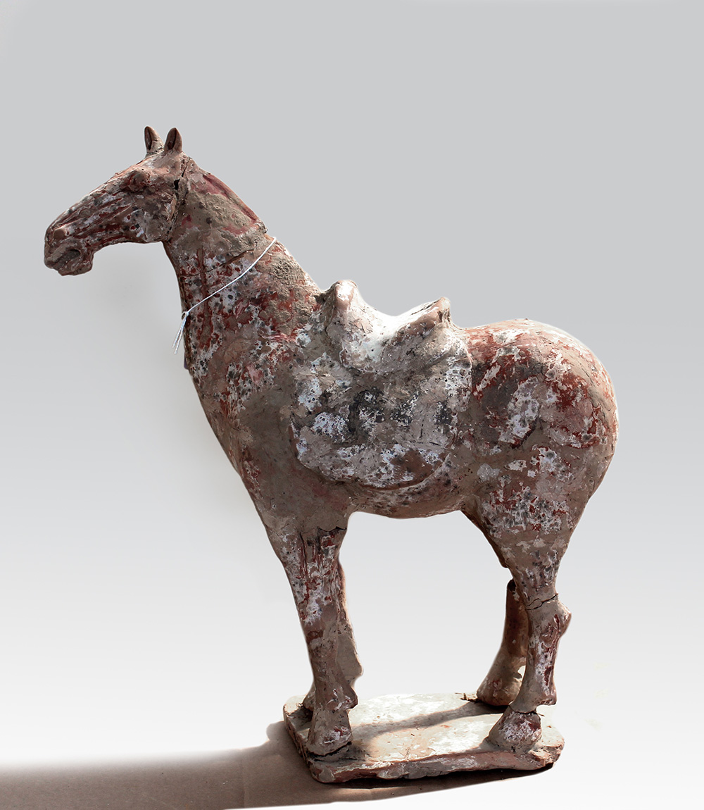 Manifattura cinese Cavallo in terracotta (difetti, restauri e mancanze, tracce di pigmenti) (h. 40,5 cm.)