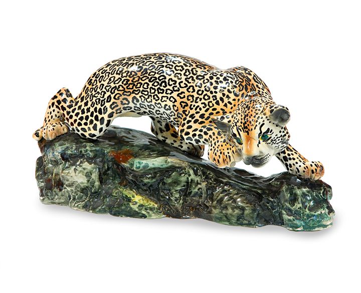 LE BERTETTI Felis Pardus Statuetta ceramica a colaggio smaltata in...