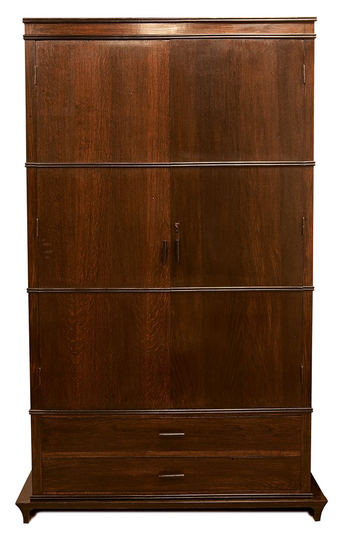 STURANI MARIO Armadio a due ante e due cassetti, decoro a fasce in legni...