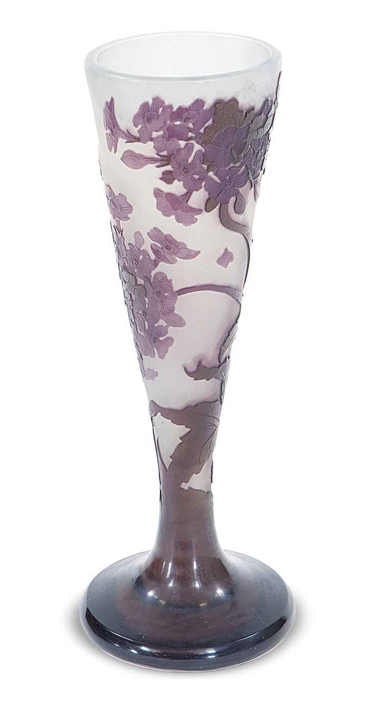Lot 53 | GALLE' Vasso cornet in vetro doppio riposante su base circolare. Decoro di...