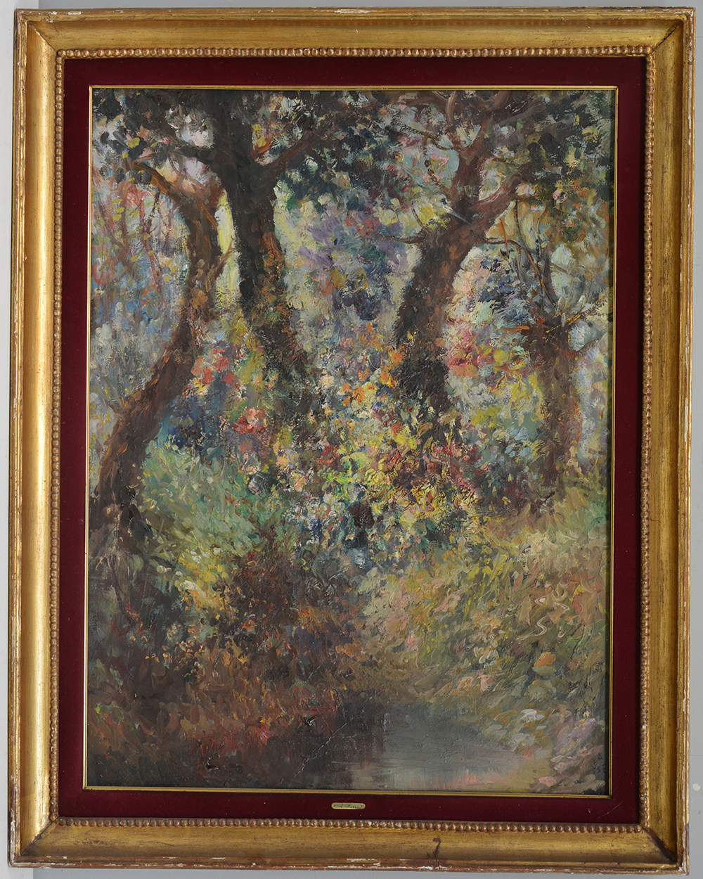 Ignoto, "Boscaglia" olio materico su tela (cm 80x60) in cornice (difetti)
