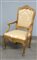 Poltrona in legno dorato e intagliato con schienale e fasce traforate, secolo...