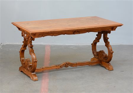 Tavolino da salotto con sostegni in legno intagliato (cm 110x55x60) (difetti)