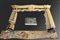 Camino in marmo rosa con fascia mossa ed inserti in marmo nero, sostegni...