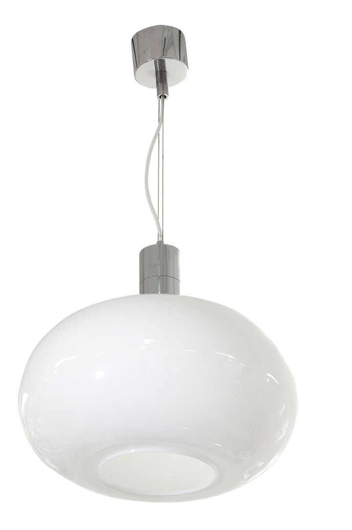 Lampadario con diffusore in vetro opalino della serie Am/As.