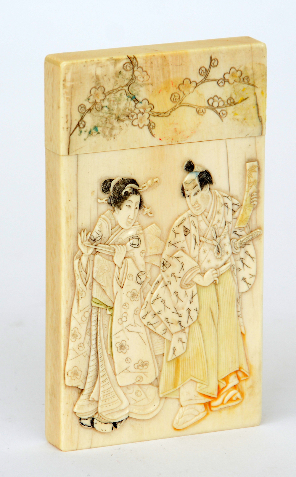 Porta biglietti da visita in avorio scolpito e inciso (difetti) Giappone,...