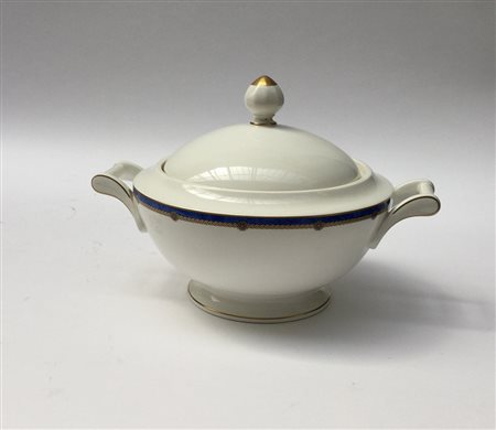 Maniffatura di Villeroy & Boch. Zuppiera con piatto in porcellana binaca.