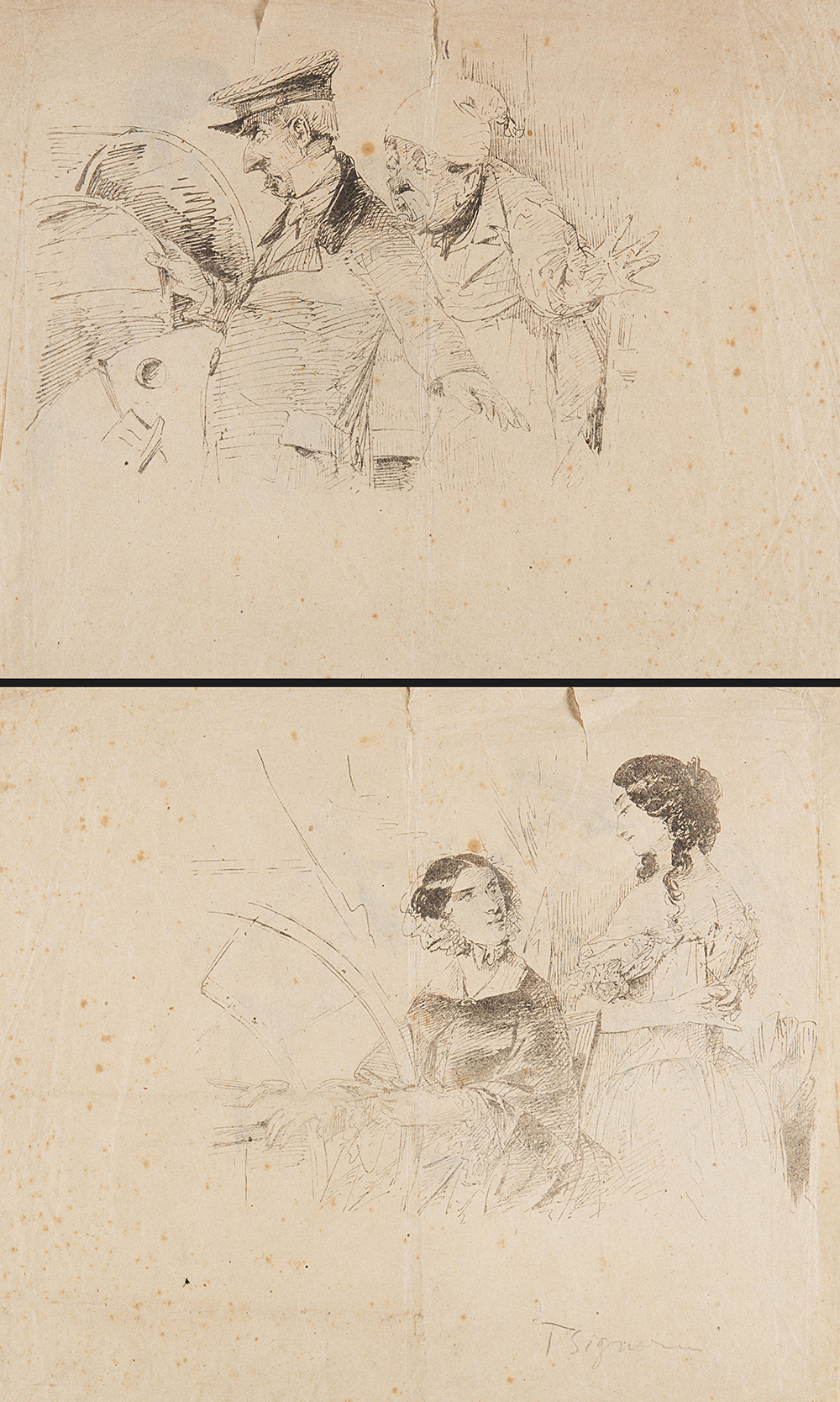 Anonimo, prima metà secolo XIX. Due prove litografiche al recto e al verso dello stesso foglio (mm 270x300) firmato a matita -EN Anonymous artist, first half of the 19th century. Two lithographic proofs on recto and verso of the same sheet (mm 270x300) signed in pencil