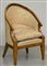 Poltrona di forma mossa in noce e radica con schienale e gambe mosse, seduta...