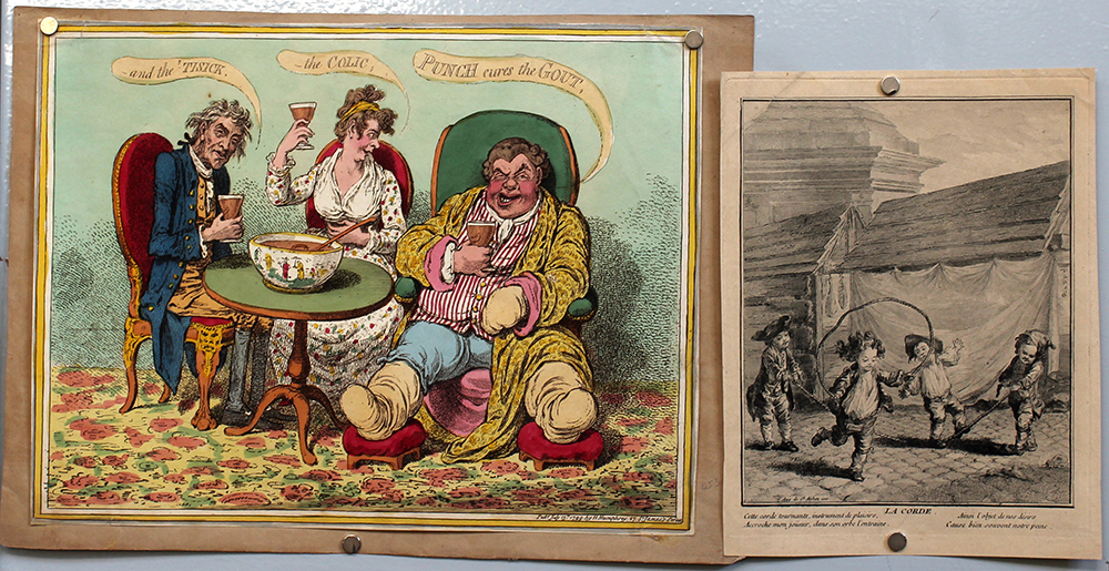Gruppo di litografie a colori del sec. XIX raffiguranti scene di vita e scene umoristiche (difetti)