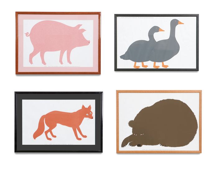 MARI ENZO Il porcello, la volpe, due oche grige e l'orso. Set di quattro...