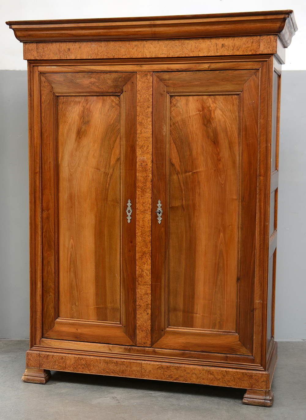 Armadio a due battenti in noce con fasce radicate (cm 170x225x65) (difetti)