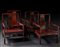 Quattro sedie con braccioli in legno hongmu decorate con motivi geometrici ad...