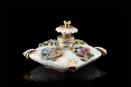 Porta inchiostro in porcellana policroma, Meissen, secolo XVIIIIl porta...