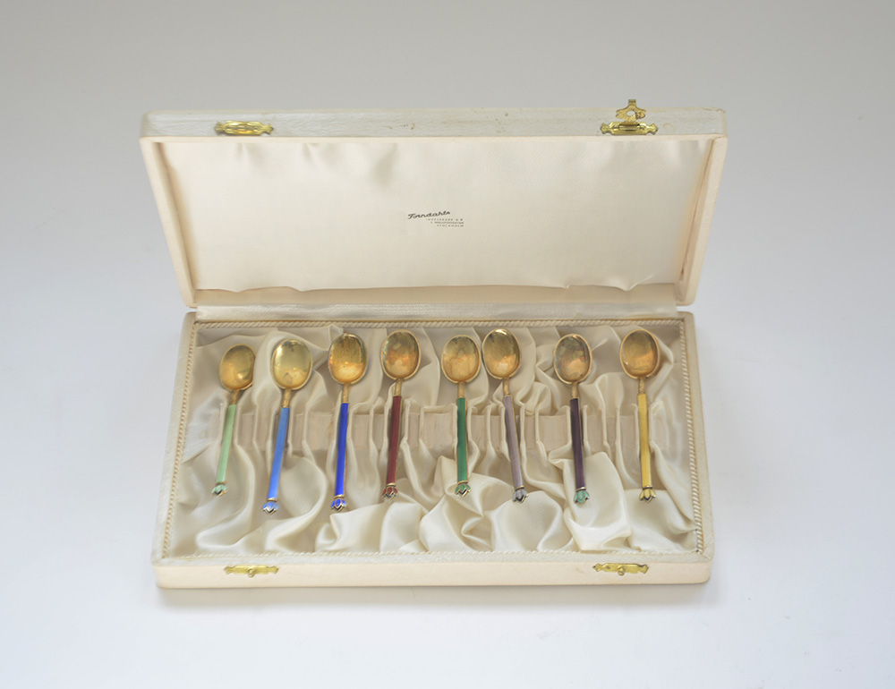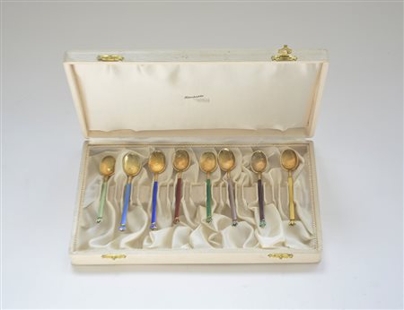 Otto cucchiaini in argento dorato. Norvegia, metà secolo XX. Argentiere David Andersen (g 80 ca.)