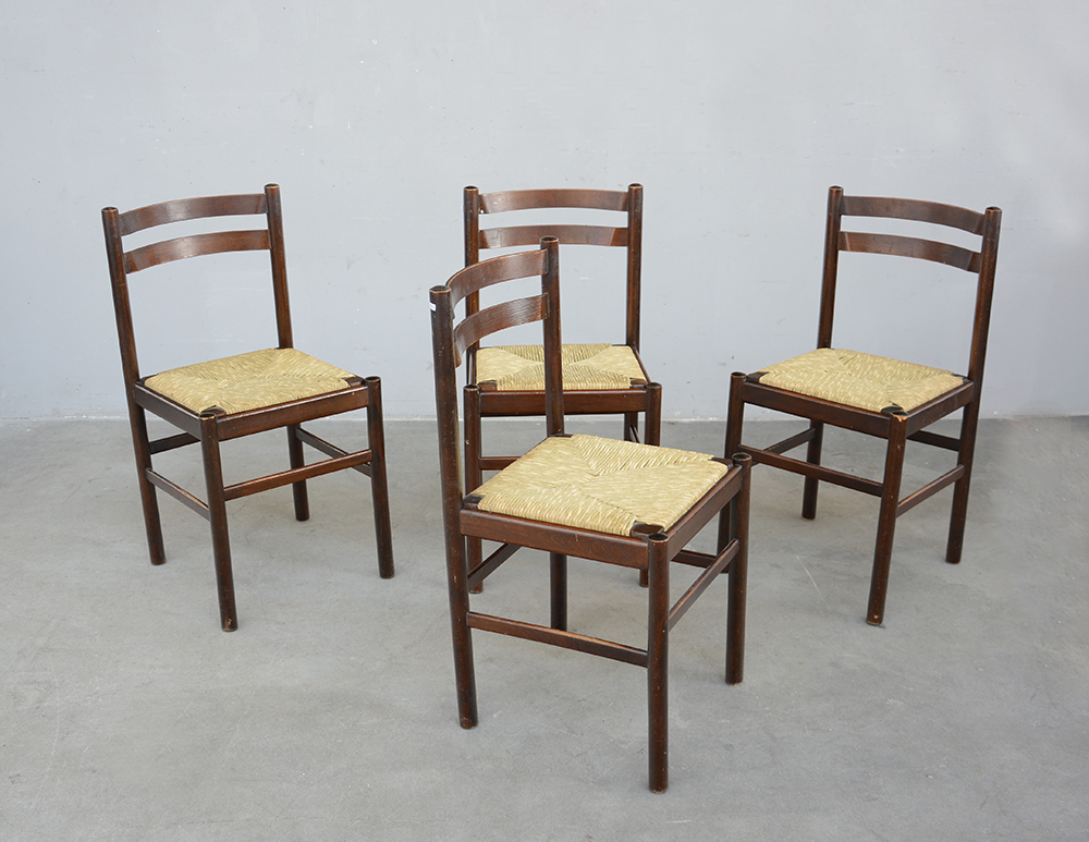 Gruppo di quattro sedie impagliate con schienale curvo (difetti)