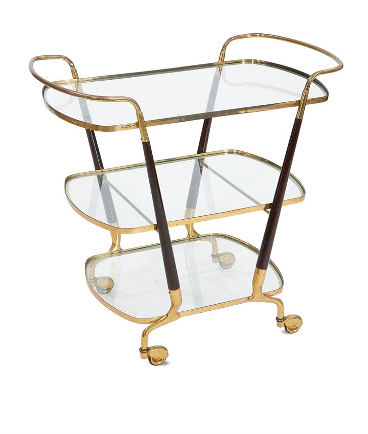 CARRELLO Carrello bar a due piani di forma ellittica con telaio in ottone...