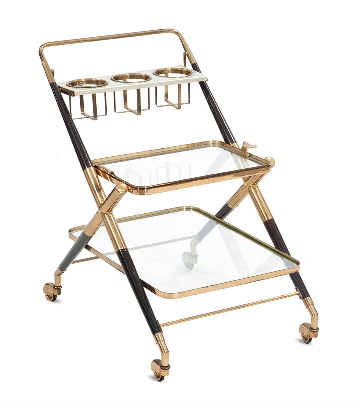 Carrello bar con telaio ebanizzato nero e ottone zapponato.