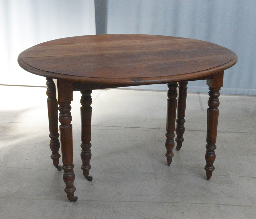 Tavolo allungabile ad alette in noce con sei gambe tornite e sfaccetate (cm 116x72x53) (difetti)