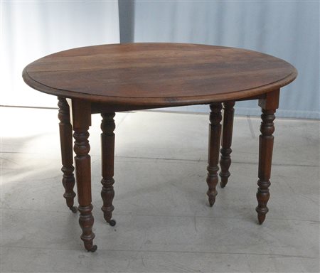 Tavolo allungabile ad alette in noce con sei gambe tornite e sfaccetate (cm...