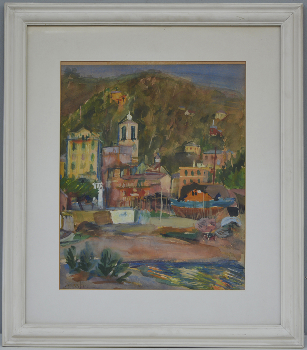 Nessler "Paesaggio con edifici" acquerello (cm 42x34) firmato in basso a sinistra, in cornice