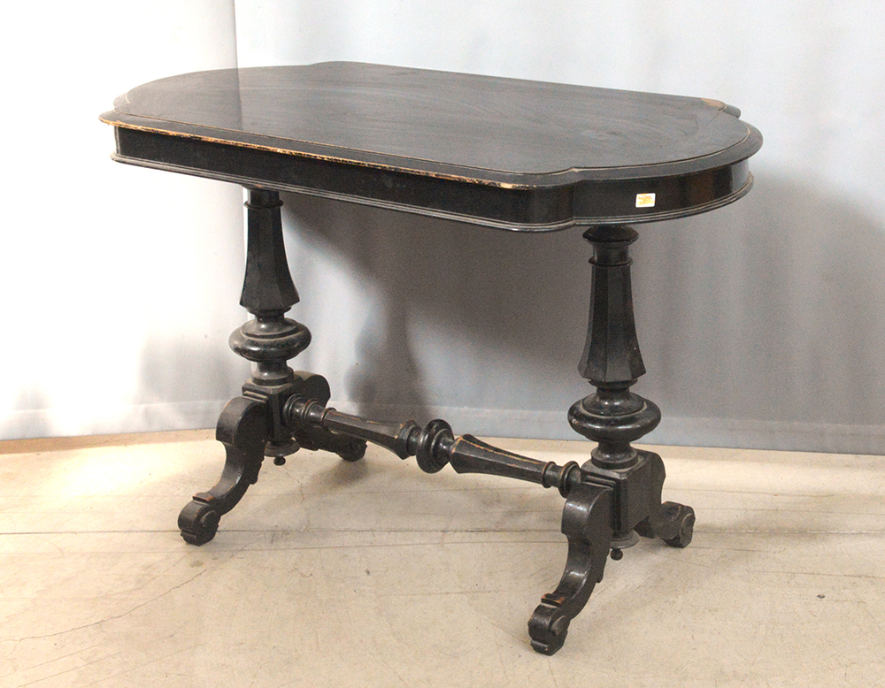 Tavolo da centro con quattro gambe tornite riunite da traverse dritte (cm 108x80x57) (difetti)