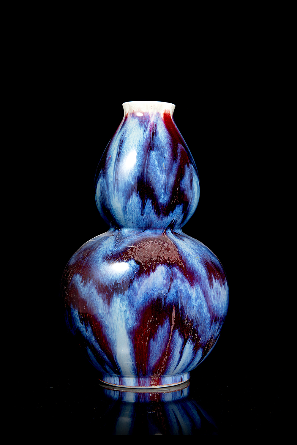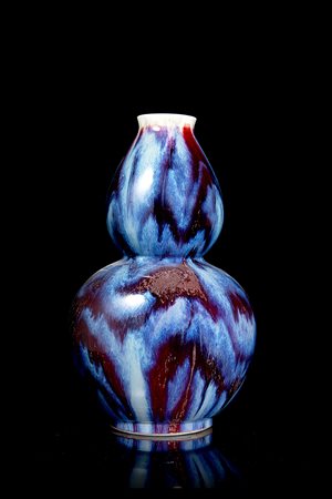 Vaso a doppia zucca con invetriatura flambé Cina, secolo XX (h. 33,5 cm.) -EN A flambè-glazed double gourd vase China, 20th century (h. 33.5 cm.)