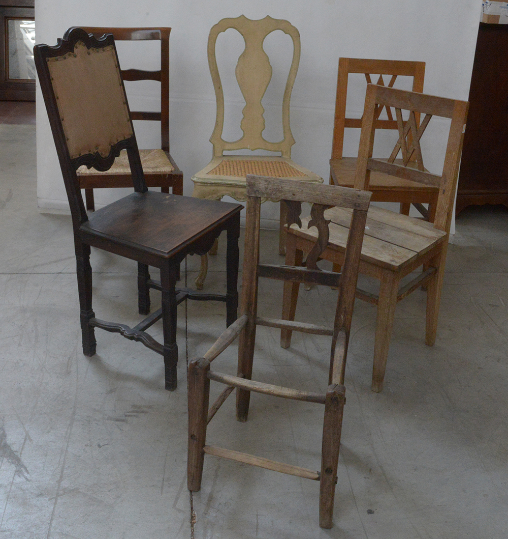 Lotto composto da sei sedie diverse (difetti e mancanze)