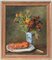 Scuola della fine del secolo XIX, "Vaso con fiori e aragosta" olio su tela...