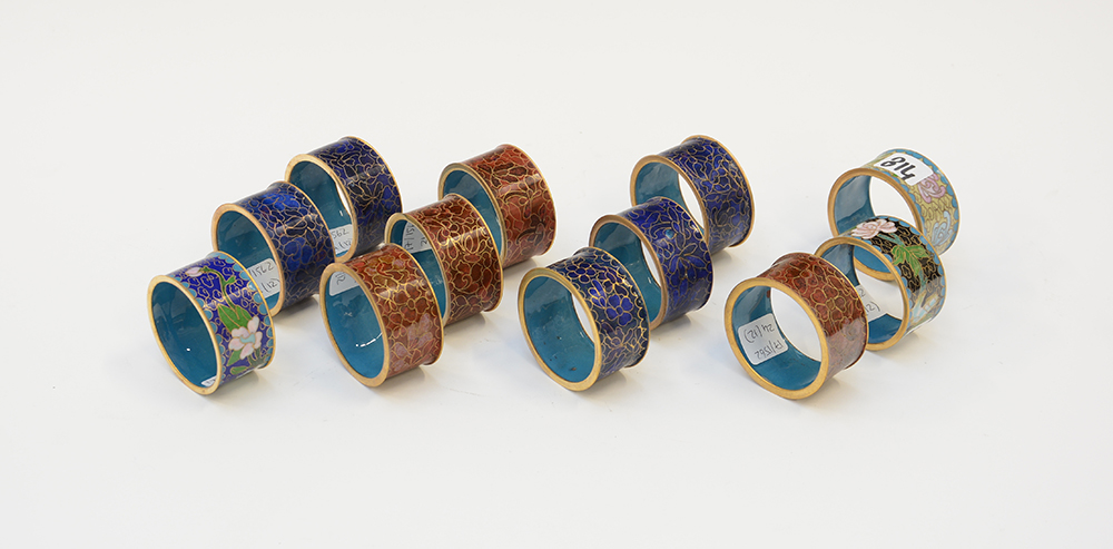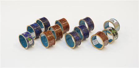 Dodici portatovaglioli in metallo cloisonné con decorazione floreale (d. 5,5 cm.) Cina, sec. XX