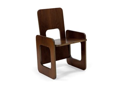 Sedia ripiegabile, prototipo in multistrato di noce.