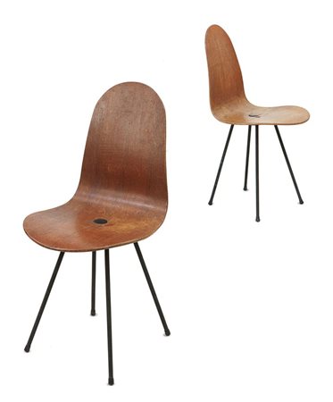 CAMPO FRANCO, GRAFFI CARLO Due sedie in compensato di teak curvato verniciato...