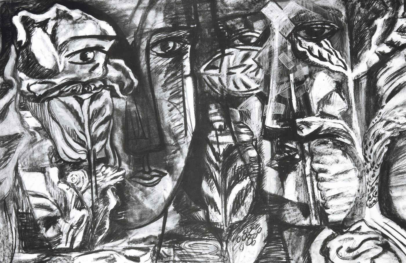 CHIA SANDRO Firenze 1946 "Figure" 60x96 litografia su carta p.a. Opera firmata in basso a destra (a matita)
