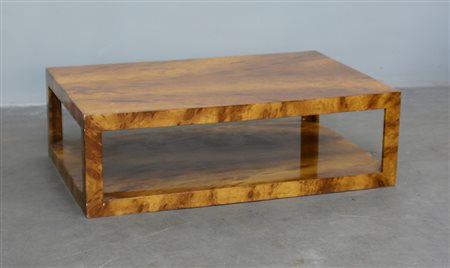 Tavolo da salotto di forma rettangolare in legno MDF laccato in finta radica. Italia, anni '90. (cm 120x37x85) (difetti) -EN Tavolo da salotto di forma rettangolare in legno MDF laccato in finta radica. Italia, anni '90. (cm 120x37x85) (difetti)