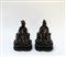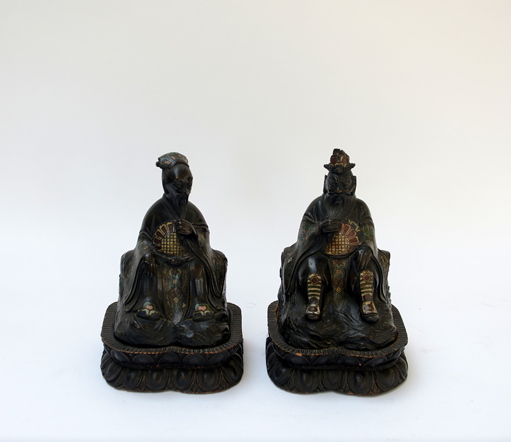Coppia di dignitari con dettagli a smalti cloisonné e base in legno...