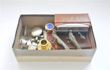 Scatola contenente numerosi oggetti diversi e alcune bomboniere in argento...