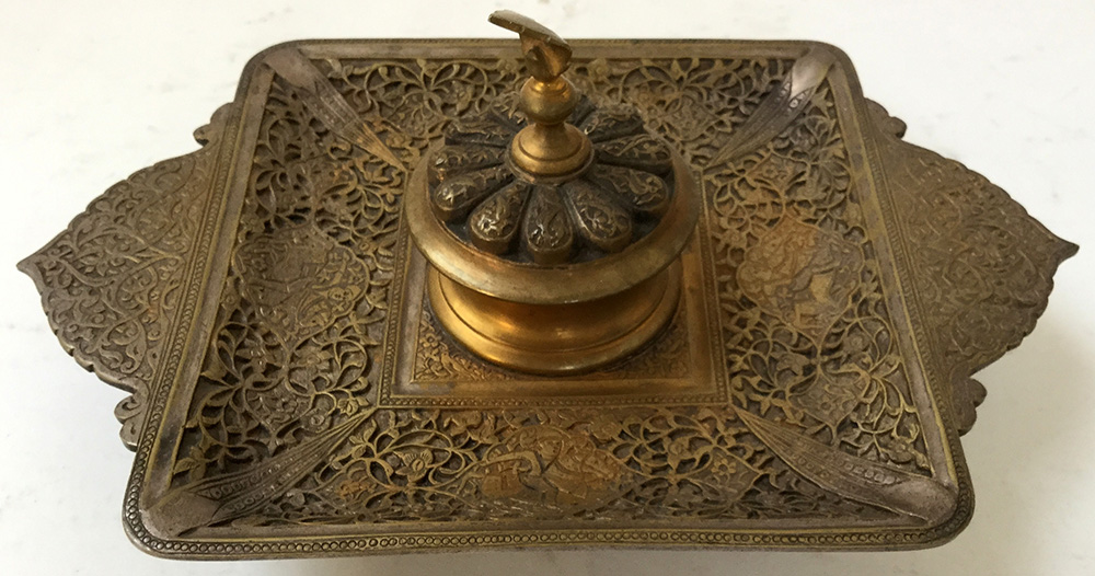 Calamaio in bronzo a decoro orientale. Persia, inizio secolo XX