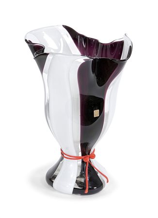 ZANETTI Vaso a fazzoletto in vetro a fasce alternate biance e nere. Fiocco...