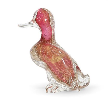 SEGUSO ARCHIMEDE Papera in vetro massiccio rosa con riflessi in lamina d'oro...