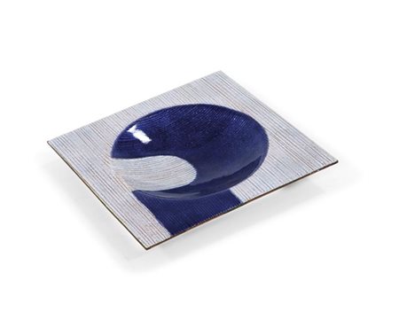 STUDIO DEL CAMPO Svuotatasche in rame smaltato con decoro geometrico in blu e...