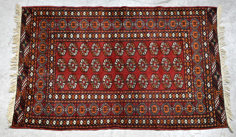 Tappeto Bohukara, Pakistan sec. XX Disegno a gul su fondo rosso (cm 150x97) (difetti)