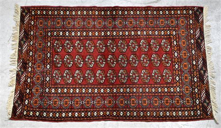 Tappeto Bohukara, Pakistan sec. XX Disegno a gul su fondo rosso (cm 150x97)...