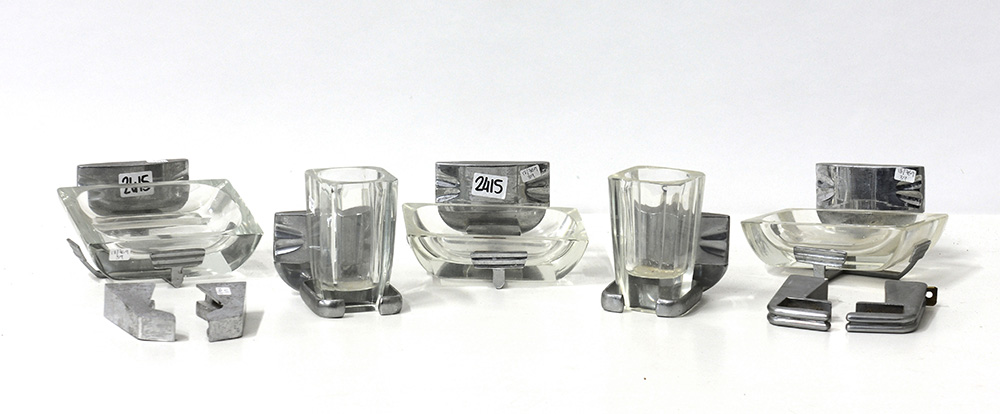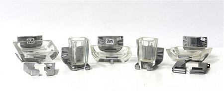 Servizio da bagno in cristallo e alluminio pressofuso. Italia, anni '30. (lievi difetti e mancanze) -EN Servizio da bagno in cristallo e alluminio pressofuso. Italia, anni '30. (lievi difetti e mancanze)