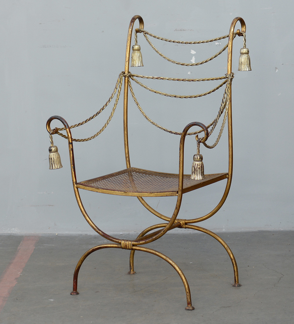 Poltroncina Neoclssica in ferro battuto, saldato e dorato. Italia, anni '40. (cm 70x104,5x55) (difetti) -EN Poltroncina Neoclssica in ferro battuto, saldato e dorato. Italia, anni '40. (cm 70x104,5x55) (difetti)