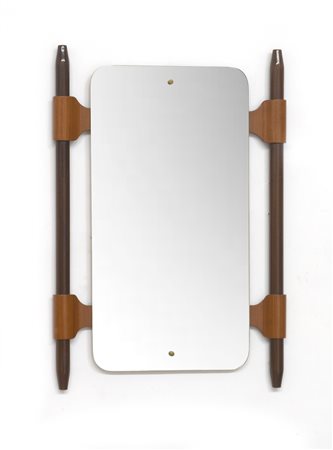Specchio con struttura in compensato curvato e legno massello. Italia, anni '60/'70. (lievi difetti)