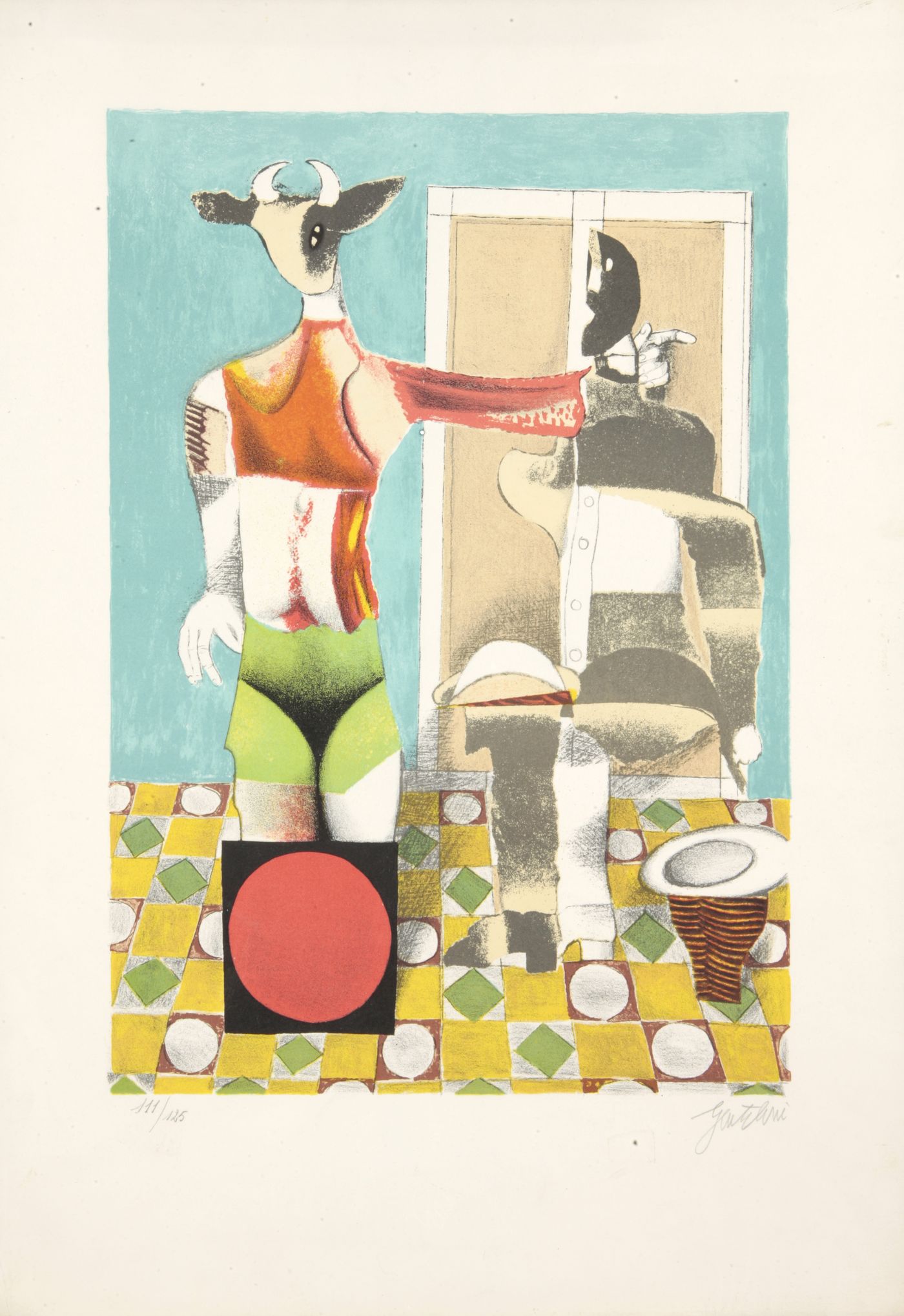 GENTILINI FRANCO Faenza (RA) 1909 - 1981 Roma "Minotauro" 1978 70,5x49,5 (foglio) 52,5x36,5 litografia a colori es.111/125 Opera firmata in basso a destra (a matita), munerata in basso a sinistra